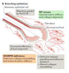 青春期乳腺发育的过程中,成纤维细胞(fibroblast)决定乳腺细胞的集体迁移(collective migration)。