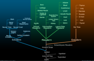 干细胞的出现需要两个组织相遇。消化道(胰腺,肝脏)和肺是中胚层和内胚层相遇,皮肤和乳腺是中胚层和外胚层相遇,中胚层来源的间充质细胞转化为成纤维细胞,内胚层和外胚层来源的上皮细胞中出现干细胞。有些器官由中胚层独自构建,如心脏,血液,脾脏,肾脏,骨骼,肌肉,其中血细胞经过多次归巢,最终在骨髓中找到间充质细胞作为同伴,形成造血干细胞,而有些并没有找到伴侣,无法产生干细胞,如心脏中没有心肌干细胞。