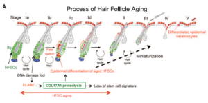 Hair follicle aging is driven by transepidermal elimination of stem cells via COL17A1 proteolysis –Science 351: aad4395 (2016)