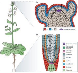 动物上皮组织的干细胞中,PRC1(Bmi1)将谱系决定因子(lineage determination factor)基因组织在一起,来决定细胞的依次分化命运,也使基因调控网络滞留在某个阶段,产生静态干细胞。植物中没有PRC1基因,细胞核中也不存在PcG body(PRC1将谱系决定因子基因组织在一起的结构),植物没有严格意义上的干细胞。